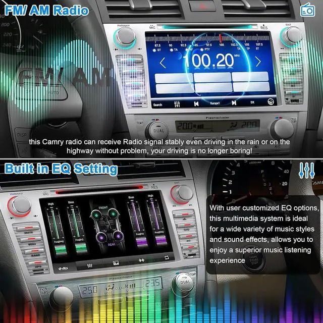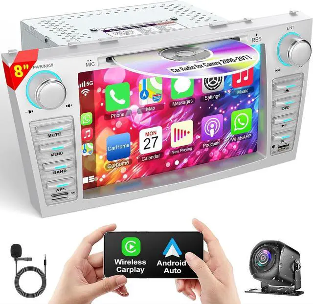 CarPlay&Android Auto -- Access icons on your iPhone by activating Siri/Google Assistant voice controls or touchscreen. Available features include Phone, Music, Maps, Text messages, Radio, Podcasts, Audiobooks. This camry radio with cd make your drive more interesting.