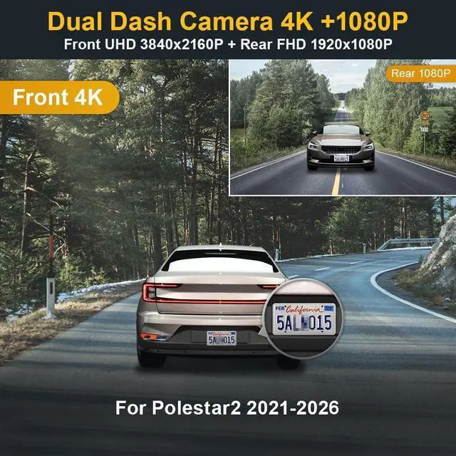 Integrated for Polestar 2: FITCAMX dash cam blends perfectly with the mirror housing, No visible wires, No windshield blocking, Non obtrusive at all, which is very professional looking as if it is factory built. Suitable for Polestar 2 2021-2026 vehicle styles (*NOT for Polestar 3, which is another model)