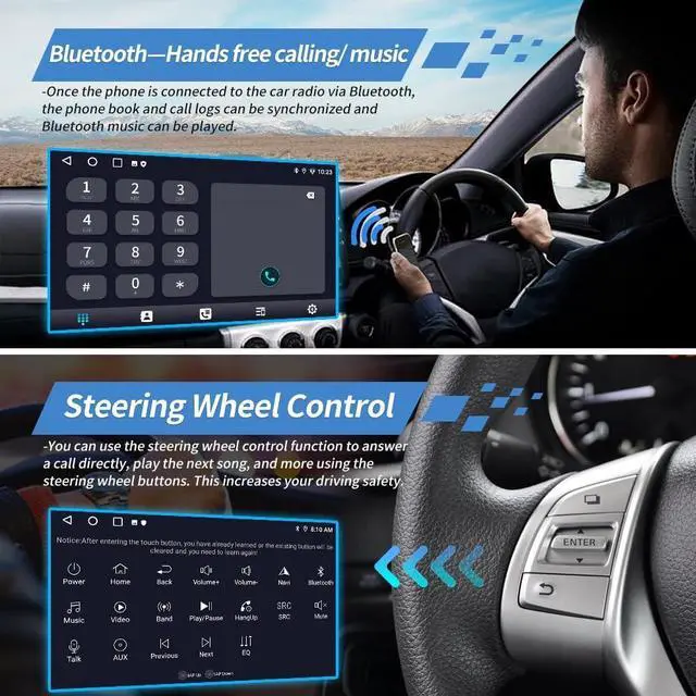 Steering Wheel Remote ControlOur car stereo with steering wheel controls allows you to conveniently and safely operate the system directly from your steering wheel. Enjoy full control over the audio experience without having to take your hands off the wheel, allowing you to concentrate on driving