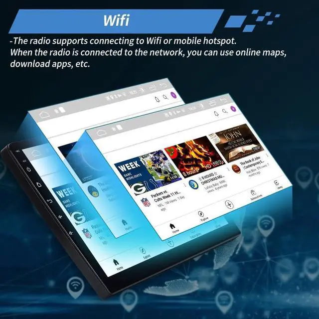 Wifi and online NavigationThe radio supports Wifi connection. When you are connected to Wifi, you can download apps on the radio, use online maps, etc. When you use Carplay and Android Auto, you can also use online maps. If you want to use offline maps, please contact us to obtain offline map data