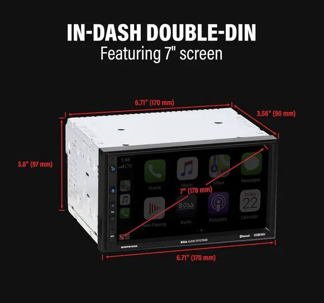 Apple CarPlay - Access icons on your iPhone by activating Siri voice controls the touchscreen. Available features include Phone, Music, Maps, Text messages, Radio, Podcasts, Audiobooks
