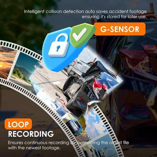 Advanced Collision Detection The integrated G-sensor detects sudden impacts or collisions, automatically locking and saving the footage before, during, and after the incident for insurance claims or legal purposes.