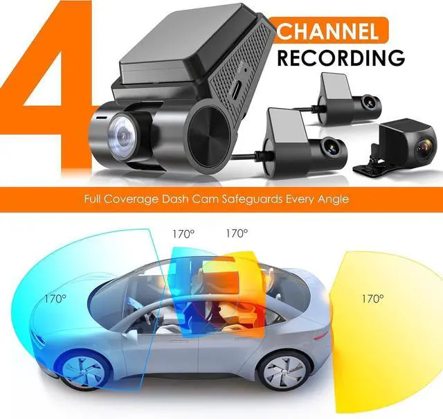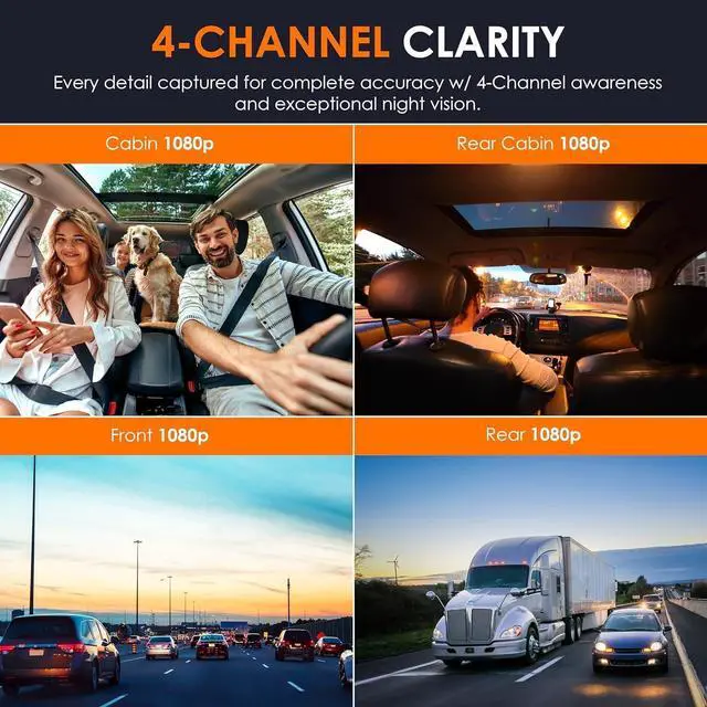 Quad-Channel 1080p Recording The UZIVO RH24 dash cam provides comprehensive coverage with four 1080p cameras, capturing footage from the front, rear, and inside the cabin. The cabin camera can be adjusted to record either the front or rear, offering complete interior surveillance.