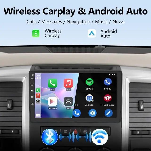 Wireless CarPlay/ Android Auto Wireless CarPlay and wireless android auto can be used by Bluetooth connection; Support voice control, and can access your phone functions such as music, navigation, calls, messages etc.