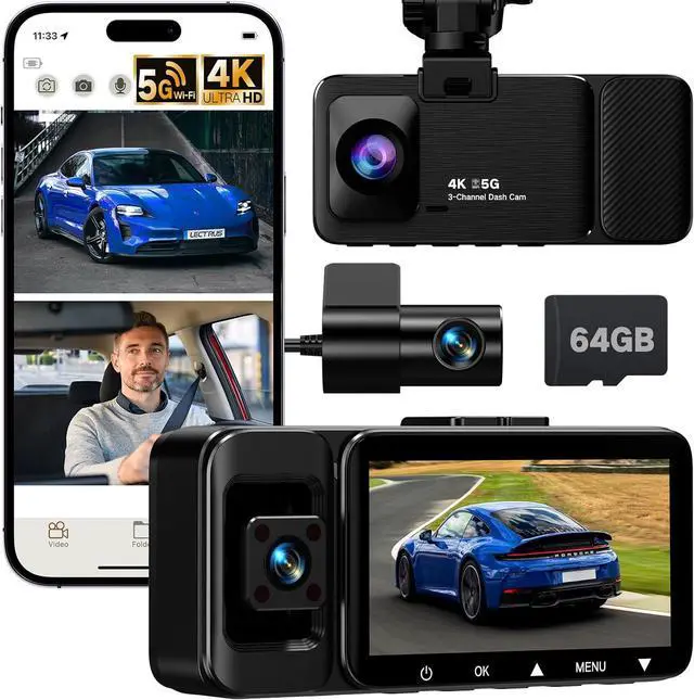 Ultra-HD 4K front + 1080P rear + 1080P interior recording The Lectrus dash cam supports 3-channel simultaneous recording, capturing the front, rear, and interior at the same time. The 170° wide-angle front camera covers up to six lanes and clearly records license plates, traffic signs, and important details ideal as a reliable video evidence on the road.