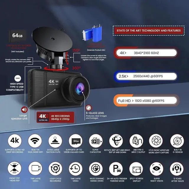 Advanced HDR ensures license plate visibility in darkness. Type-C Fast-Charging & Durability Advantage Reversible USB-C connector (vs. traditional mini-USB) enables 3X faster charging*, superior heat resistance, and 10K+ plug cycles. *(Lab-tested vs. mini-USB)*