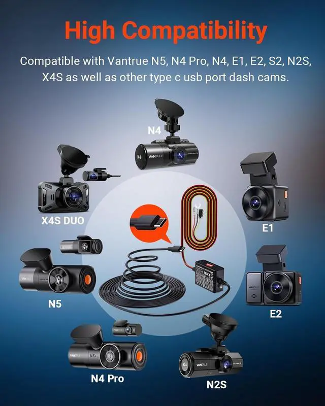 Please note: It doesn' t work for other Vantrue Dash Cams, it only works for N4 ProSE1 Pro, N5, N5S, N4, N4S, E2, S1 Pro (Max), N2X, E360 dash cam.