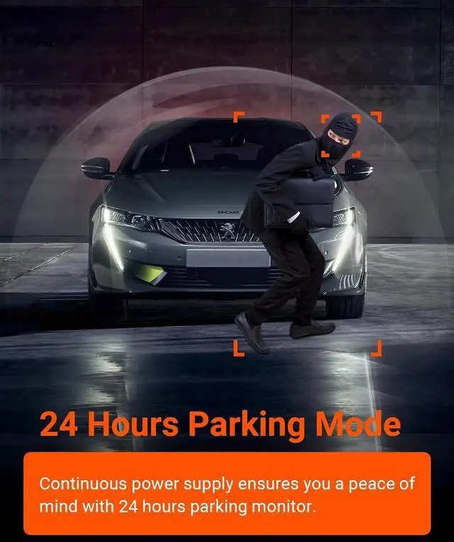 [Timer setting] Custom timer setting (1, 3, 6, 12, 24 hours or always recording) available for continue recording/receiving power after you parked your car.
