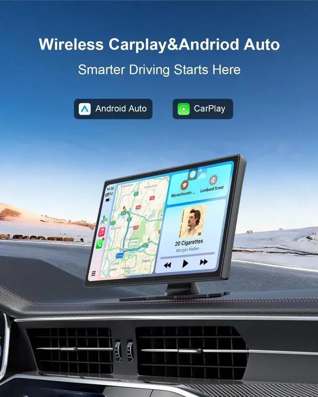 Portable Apple CarPlay & Android Auto: Transform your car instantly with plug-and-play compatibility! This 9" portable carplay screen supports wireless Apple CarPlay and Android Auto, seamlessly syncing your smartphone for hands-free navigation, calls, music, and app control. Perfect for older cars lacking modern techjust plug into the cigarette lighter and enjoy a smarter, safer drive.