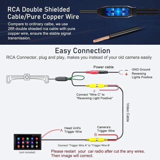 HEAVY-DUTY LICENSE PLATE FRAME BACKUP CAMERA: Perfect for most of vehicles that use a standard US license plate. It is like a plate frame mounted on the license plate, holds the license plate securely without blocking the license plate info. Before buy, pls check your license plate size first. Not include Monitor.