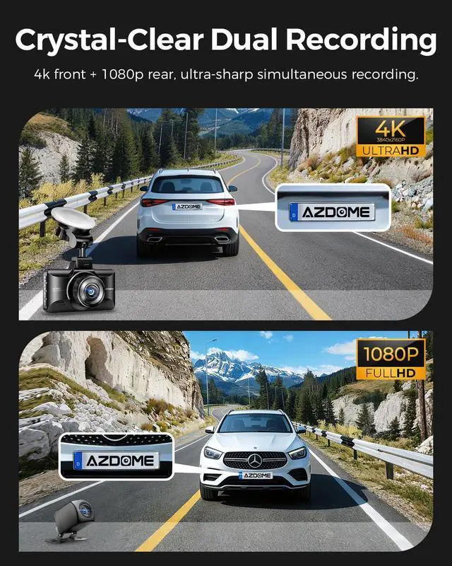 Resolution: Captures every detail with the 4K UHD resolution, AZDOME M01 Max dash cam front and rear ensuring high-quality footage for your peace of mind on the road.