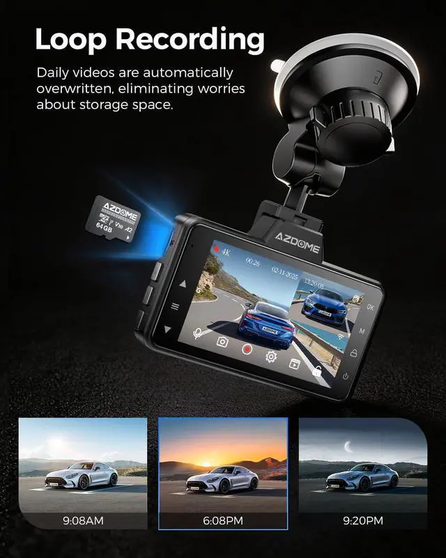 Convenient App Control: M01 Max 4K dashcam for car is built in Wi-Fi, enables you easily manage settings and view, download, playback and share videos via the dedicated AZDOME app.