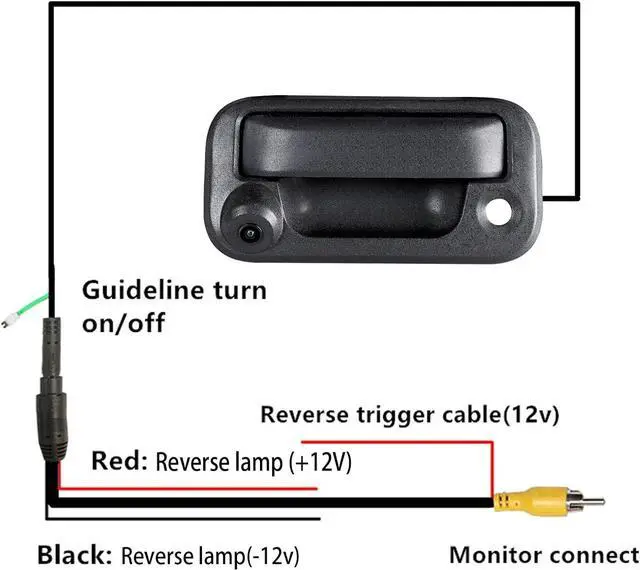 Package included: 1 x For ford tailgate handle rear camera, 1 x 26 ft (8 meters) RCA video output cable 12v and installation instruction are included. RCA cable provides sufficient length to reach your head unit or rearview mirror LCD or any other device from the tailgate.