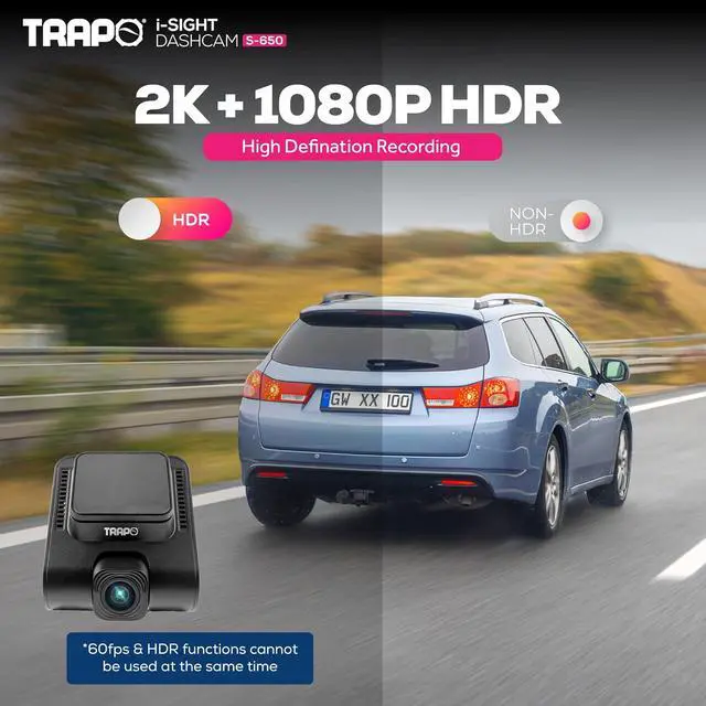 Crystal-Clear 2K Recording with HDR - Capture sharp footage with 1440p QHD resolution and High Dynamic Range for enhanced visibility in bright daylight or at night. Wireless dash cam is ideal for reading license plates and capturing critical details.
