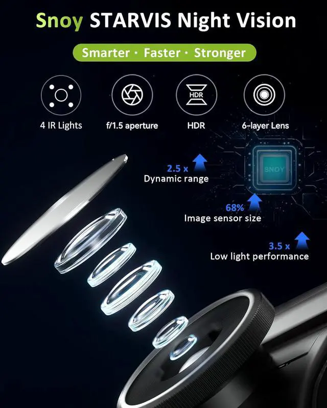 STARVIS Night Vision & HDR & 4 IR Cabin Lights The car camera combines STARVIS sensor with an ultra-bright F 1.5 aperture lens (6-layer glass) and 4 infrared cabin lights, powered by HDR technology. This pro-grade setup balances extreme light/dark areas, delivering full-color night vision that reveals license plates, facial details, and road hazards even in pitch-black conditions. Ideal for drivers, nighttime deliveries, or cross-country road tripsnever miss a critical detail