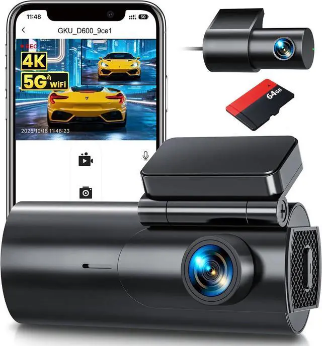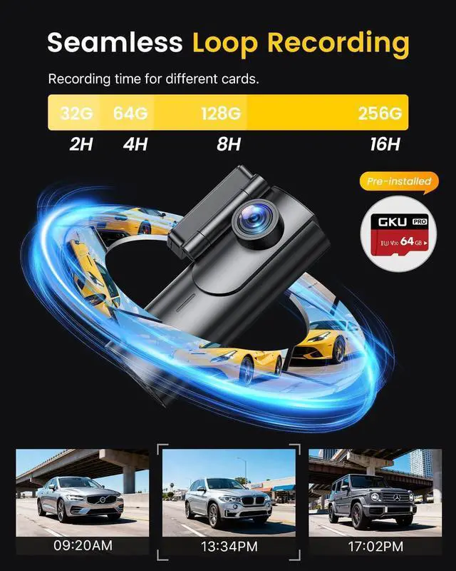Built-in 5GHz Wi-Fi & Free App- Experience effortless connectivity with our dashcams integrated 5GHz Wi-Fi, which instantly links to the " GKU GO" app on your Android or iOS device. Enjoy live streaming, quick video downloads, and easy adjustments to settingsall at your fingertips. Whether you' re reviewing your latest drive, editing clips, or sharing your adventures on YouTube, Twitter, Facebook, or any other social platform, managing your recordings has never been this seamless.
