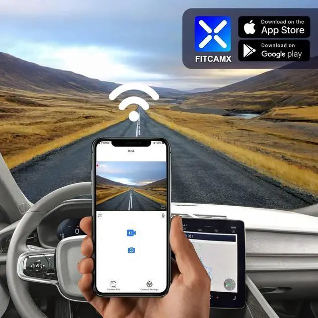 Easy to Install & WiFi: By connecting with built-in WiFi, you can view real-time videos while on the road with FITCAMX APP. You can also watch video on PC by inserting SD card. NO NEED to connect WiFi unless in need to manage or download video, as the camera will auto start after car starts. (*No affect the use of CarPlay or Bluetooth)