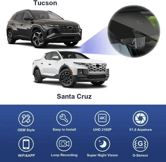 Part No#N9000: Fitcamx dash camera looks OEM from outside, No cable routing needed, No windshield blocking, just plug and play. Suitable for Hyundai Santa Cruz and Tucson Hybrid 2022-2026 vehicle styles, which is equipped with auto-dimming rearview mirror. *Make sure your original part number ends with N9000