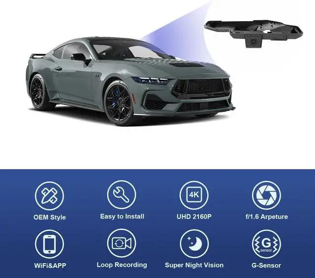 Integrated for 2024-2025 Ford Mustang S650, Gen7: Fitcamx dash cam is so well integrated with the model, No visible wires, No windshield blocking. A clean OEM Look! Suitable for Ford Mustang and convertible 2024 2025 Ecoboost, GT Premium, Dark Horse vehicle styles
