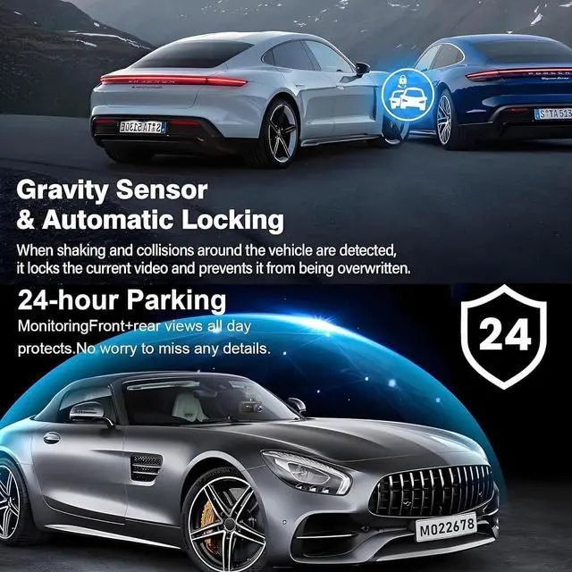 24-hour parking Car CameraProtect your vehicle after using an additional hardwire kit. Accidents can be captured while parked, and front, rear, and interior cameras provide comprehensive coverage. Secure your vehicle throughout the day. Motion detection or collision detection parking modes allow the camera to automatically start recording when triggered by a motion or collision event. (Note: 24-hour parking monitoring hardwire kit is required to be purchased separately)