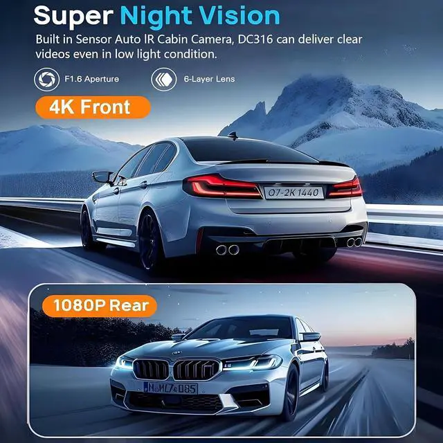 3 Channel WiFi Dash CamWith a G-sensor, 4 IR lights, and WDR technology, better night vision is provided by the 4K dash camera. Uses f/ 2.0 wide aperture with a total of 6 layers of optical lens technology, enabling the car camera to show good color accuracy and clearly capture important details day or night.