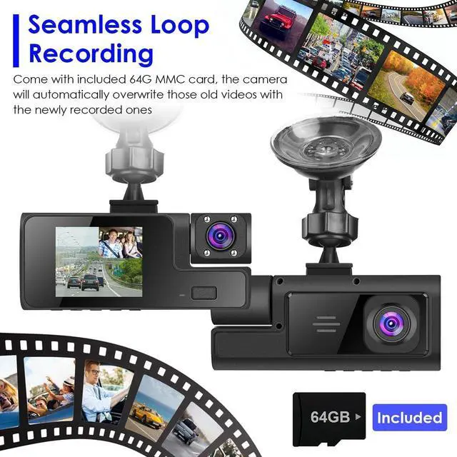 Channels FHD Dash Cam: Come with 1080P FHD front camera with wide 170° angle, 720P inside camera with 120° angle and 720P rear camera with 90° angle, our 3-channel car dash cam provides full vision coverage of your car. The front camera delivers clear and sharp video while rear camera always keeps you well informed of the road status behind. Moreover, picture-in-picture display simultaneously helps capture and retain evidence inside and in front of the car in unexpected collision.