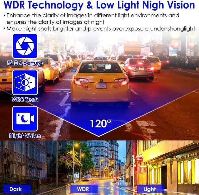 Motion Detection & Night Vision: Always worrying about thief stealing or neighbors scraping your car? Our dash camera with motion detection will automatically start recording any detected moving objects. Featured with F 2.0 large aperture and WDR technology, this night-vision dash camera also ensures your property security in low-light condition.