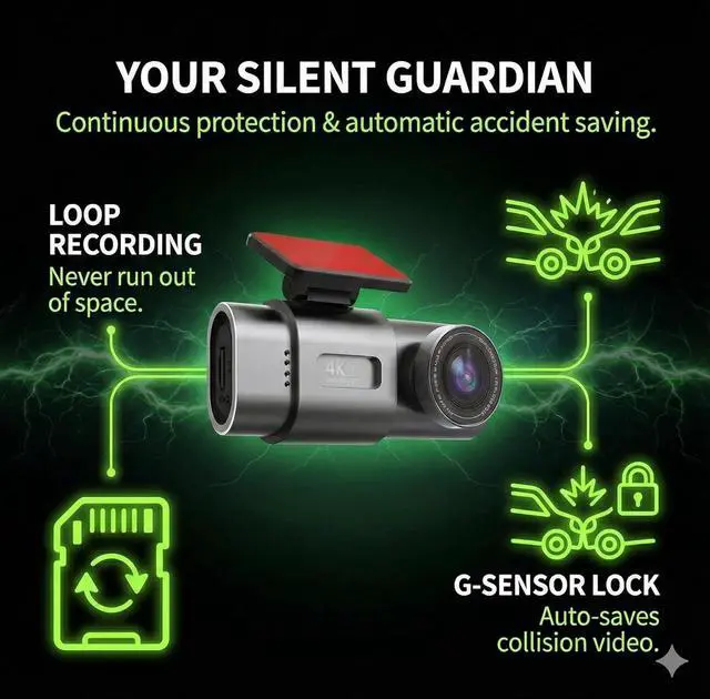 Loop Recording: Automatically overwrites older footage, ensuring non-stop recording without the need for manual file management.