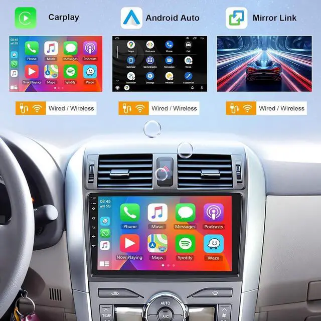 Wireless Carplay and Android Auto Mirror link: for 2010 Toyota Corolla radio support use iPhone or Android phone wirelessly with the device, and control your phone' s apps. can make calls, send messages, play music, navigate, and more with just your voice or touch. Support IOS/Android mirror link, use USB cable or WIF, mirror your phone' s screen on the device' s display, You can use your phone' s apps, music, videos, and more on the device.