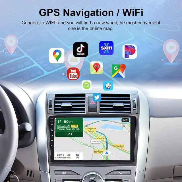 WIFI and GPS Navigation: for 2009 Toyota Corolla radio built in offline maps, after connecting to WIFI, you can download and update online maps anytime, anywhere, very convenient. With WIFI connection, you can also enjoy video and music, APPs sucn as YouTube, TikTok or Spotify can be installed or unloaded from app store.