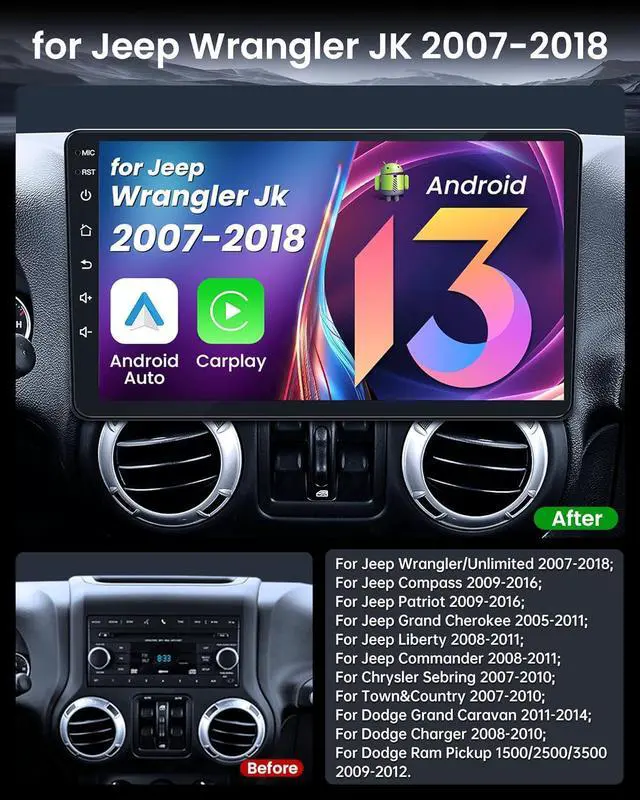 Upgrade for Jeep Wrangler JKCar Radio Stereo for 2007 2008 2009 2010 2011 2012 2013 2014 2015 2016 2017. With 4Core and 64GB of internal storage, this stereo delivers smooth, fast performance, enabling you to run multiple apps, store music, and media files with ease.