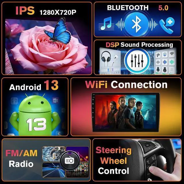 2GB RAM+64GB ROM Android 13Equipped with Android 13, 2GB RAM and 64GB ROM, this Aveo car stereo ensures fast response, smooth multitasking, and ample storage for apps, music, and videos. Enjoy a seamless, smartphone-like experience on the 9" touchscreen.
