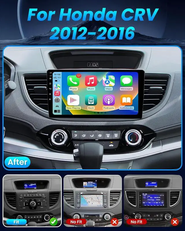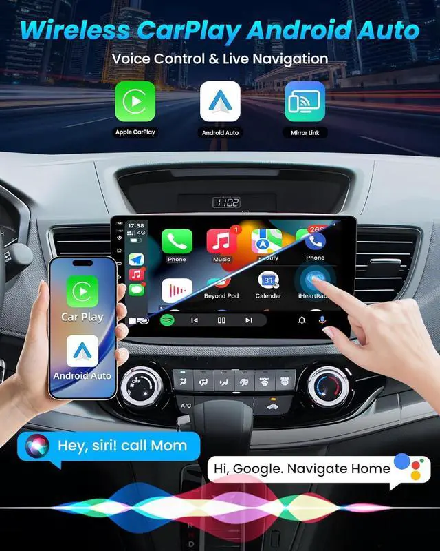 CarPlay & Android AutoThis perfect replacement screen for Honda CRV compatible with wired and wireless CarPlay and Android Auto, enabling seamless integration of your phone' s apps, support voice control Siri or Goo-gle Assistant to help you access map navigation, phone, music, notifications, messages and more. Say goodbye to distraction.