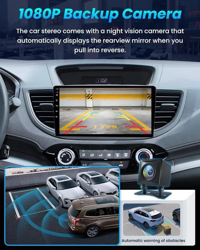 AHD Backup Camera & SWCThis CRV Head Unit comes with AHD wide angle backup camera with clear night vision and waterproof design. When vehicles on Reverse gear will automatically switches screen to improve safety. Enjoy full control of your car stereo with steering wheel controls after correct wiring, more convenient.