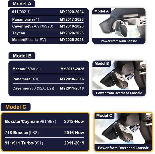 C: Fitcamx dash cam looks OEM from outside, No cable routing needed, No gap or mess wiring, looking discreet like it belongs there. A very clean factory look. Suitable for Porsche Boxter/Cayman (981/987), 718 Boxster (982), 911/911