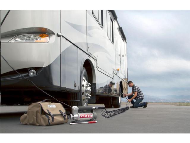 - • Great for adjusting tire pressure on RVs and trailers while on the road without having to find a local gas station.