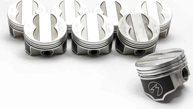 Piston - Speed Pro - Forged - 4.150 in Bore - 5/64 x 5/64 x 3/16 in Ring Grooves - Minus 6.7 cc - Coated Skirt - Pontiac V8 - Set of 8