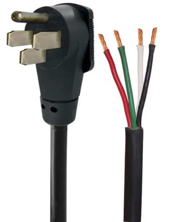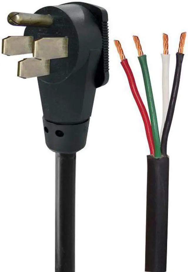 Power Supply Cord; 50 Amp Male Plug End; 50 Amp; 10 Gauge; 3 Wire; 30 Foot Length; Black; Without Plug Head Handle; With Right Angle Plug Head; STW Wire Type