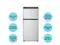 Dual Compartment 2 Door Refrigerator With Freezer; Left Hand Hinge/ Reversible To Right Hand Hinge; 8 Cubic Foot; 52-7/8 Inch Height x 23-1/2 Inch Width x 24 Inch Depth Cutout Dimensions; 5 Amp/ 12 Volt DC; DC (Direct Current) Compressor; Without Icemaker; LCD Electronic Control; With LED Interior Light; Black Metal Wrap Style Doors; With Dual Clear Crisper Drawers/ Clear Door Bins/ Hidden Hinges And Recessed Door Handles