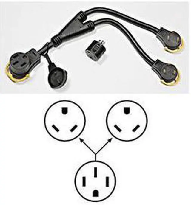 Replacement Adapter For Generator Cord; Dual; Twist Lock Plug Type; 30 Amp Female To 20 Amp Male; L5-30 Lock; With Lighted End