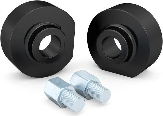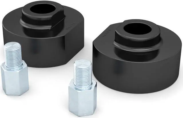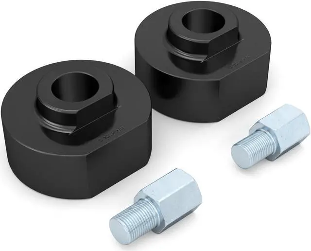 - Includes 2 Billet Aluminum Spacers of 1 11/16" (42mm) thickness with hardware as pictured for a total lift height of 2" (2.0 inch). Note that your suspension geometry is not a 1:1 ratio meaning the actual item thickness is not equal to the lift height.