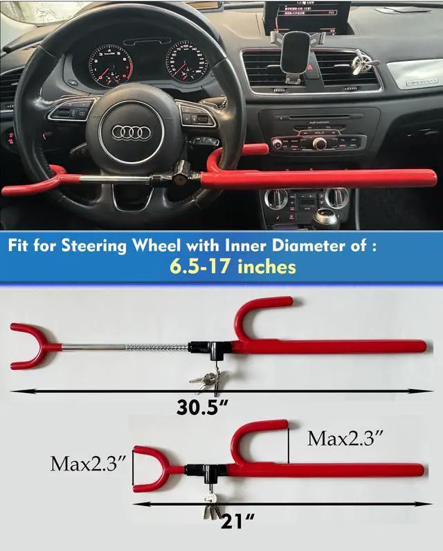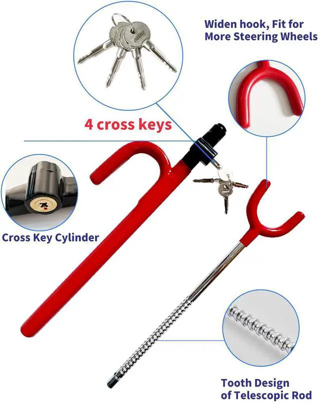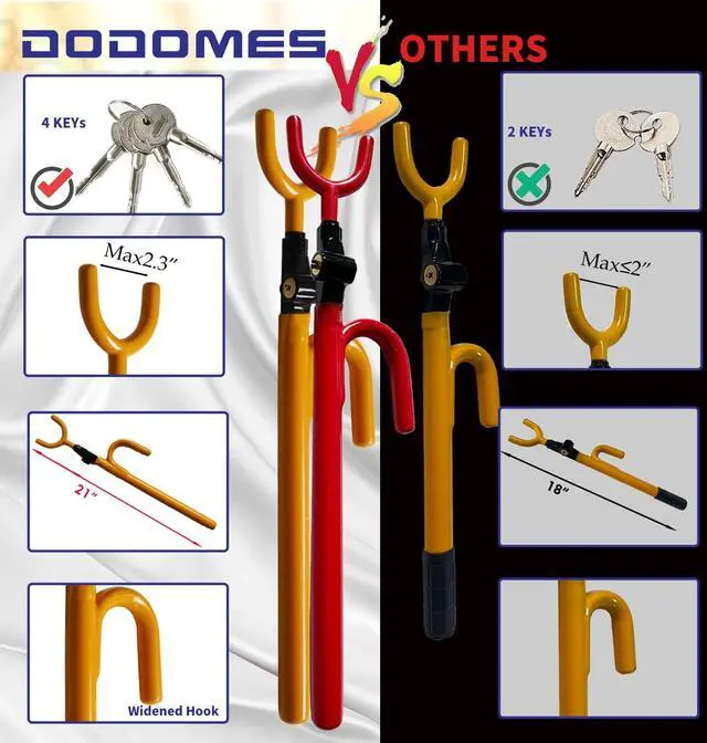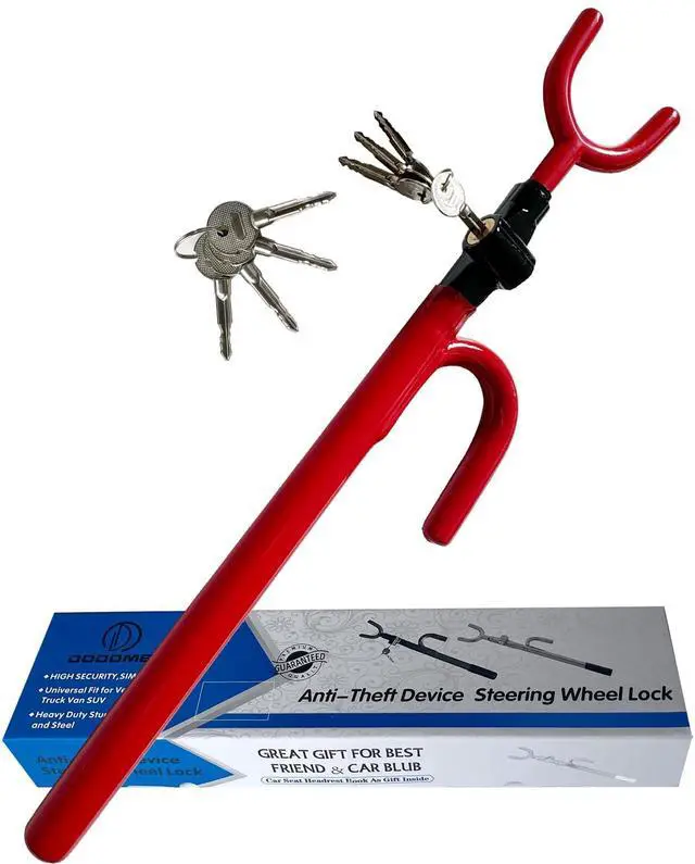 DODOMES anti-theft lock adopts hydraulic two-section telescopic, which can effectively protect the steering wheel. When the steering wheel is turning, the car door , forward and backward gears can block the lock handle so that the steering wheel cannot turning normally.