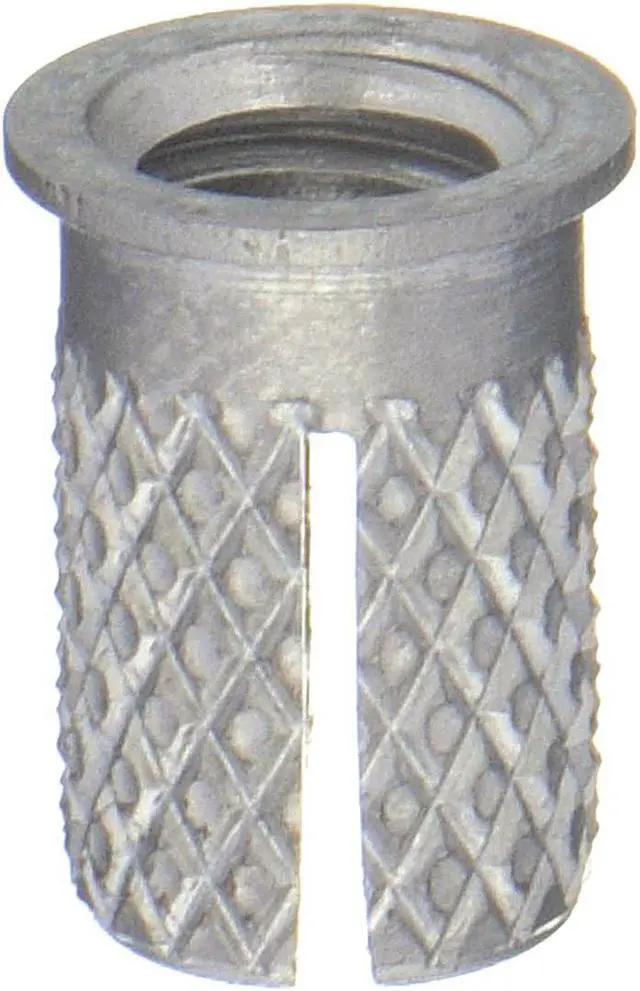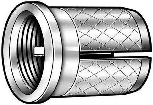 Press Insert, Insert Type Knurled Press Insert, System of Measurement Inch, Overall Length 1/2 in, Insert Diameter 21/64 in, Thread Size 1/4 In. -20, Thread Direction Right Hand, Thread Type Coarse, Material Stainless Steel, Material Grade/Class 18-8, Finish Plain, Flange Style Flanged, Body Texture Knurled, Number of Fins Not Applicable, Compatible Material Plastic, Drill Bit Size 5/16 in, Minimum Material Thickness 7/16 in, Maximum Hole Diameter 0.313 in, Manufacturer Location Made in USA. This item has been restricted from sale in the following state (s): []