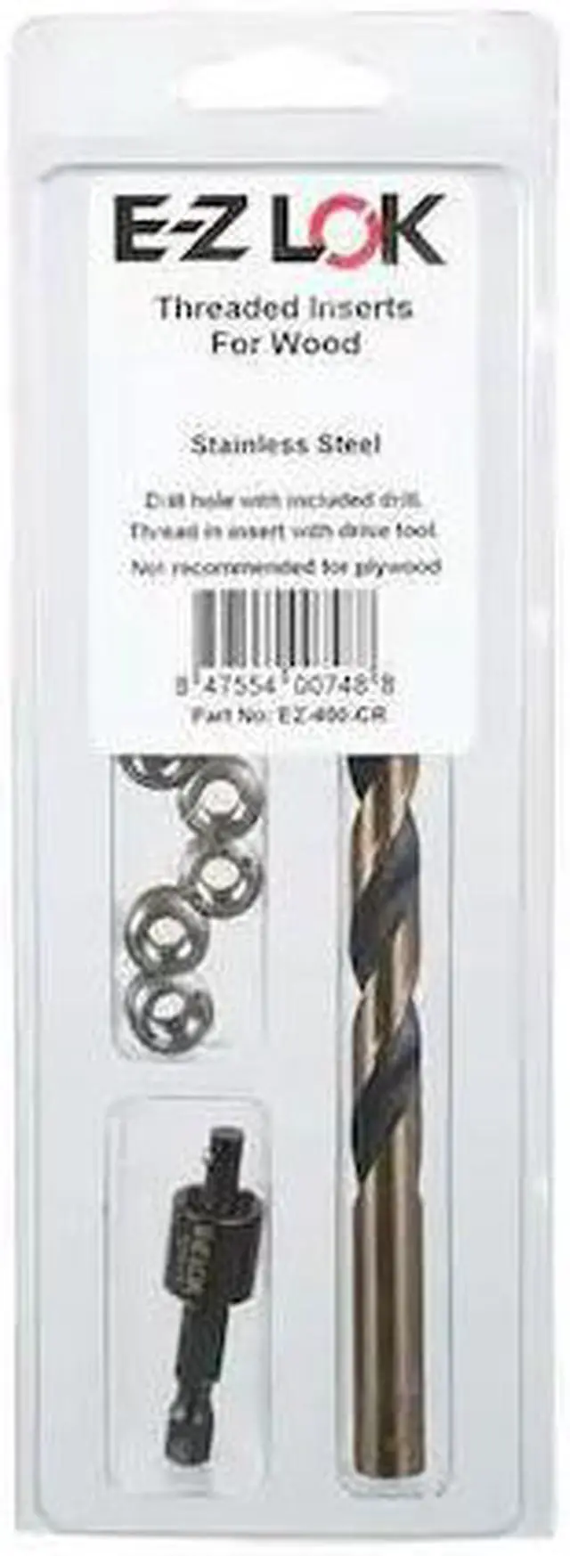 California Proposition 65: This product contains a chemical known to the State of California to cause birth defects or other reproductive harm. Thread Insert Kit, Knife Thread, Stainless Steel, Size 8-32, Length 0.375 In., Thread Type UNC, Number of Pieces 12, for Wood, Includes Inserts (10) Each, (1)