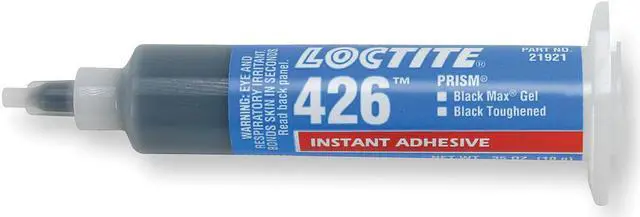 California Proposition 65: This product contains a chemical known to the State of California to cause birth defects or other reproductive harm. Instant Adhesive, Adhesive Color Black, Container Size 0.35 fl oz, Container Type Syringe, Cure Method Humidity, Maximum Viscosity 14, 000 cP, Minimum Viscosity 7, 000 cps, Series 426, Built-in Dispenser Type Syringe, Compatible Accelerator Loctite SF 712, Features Toughened with Elastomers for Impact and Peel Strength, Heat and Humidity Resistant, Materials Bonded Metal, Plastic, Rubber, Primary Applications Rubber, Standards 29 CFR 1910.1200, Electrically Insulating Yes, Gap Fill 0.01 in. This item has been restricted from sale in the following state (s): []