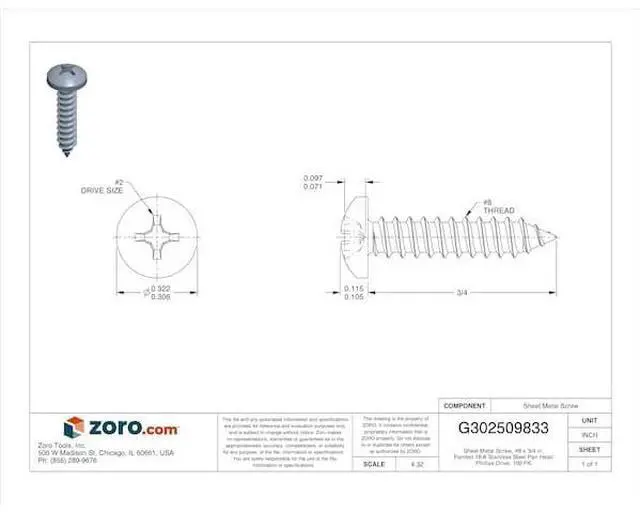 MIDWEST FASTENER 09076 Sheet Metal Screw, #8 x 3/4 in, Painted 18-8 Stainless