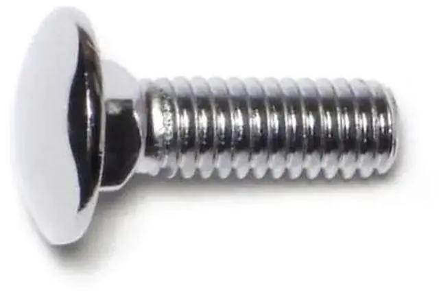 A carriage bolt has a domed or countersunk head, and the shank is topped by a short square section under the head. The square section grips into the part being fixed (typically wood), preventing the bolt from turning when the nut is tightened.