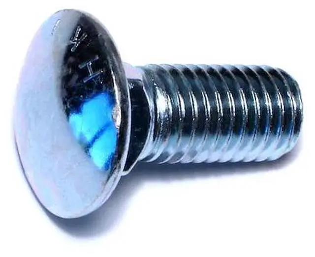 A carriage bolt has a domed or countersunk head, and the shank is topped by a short square section under the head. The square section grips into the part being fixed (typically wood), preventing the bolt from turning when the nut is tightened.