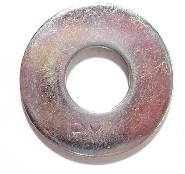 A flat washer is a thin, usually round, plate with a hole in the middle that is normally used to distribute the load of a threaded fastener. USS flat washers have a large, wider body. SAE flat washers are machined to a tighter specification and have a smaller outside diameter.