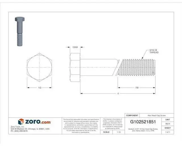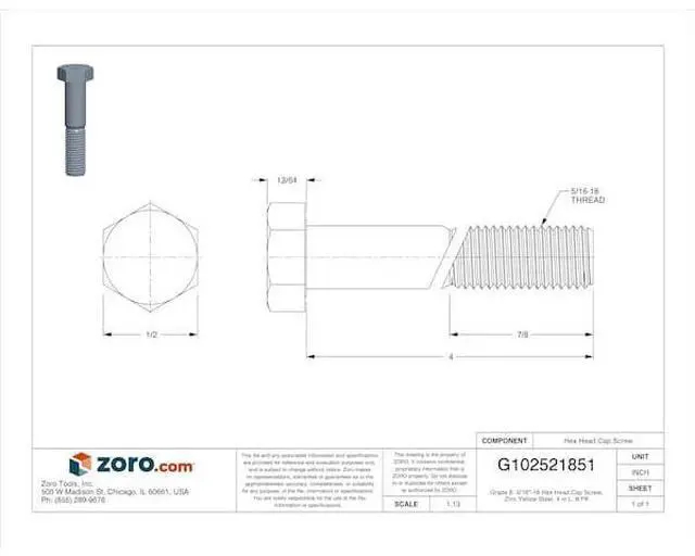 MIDWEST FASTENER 62868 Grade 8, 5/16"-18 Hex Head Cap Screw, Zinc Yellow Steel,